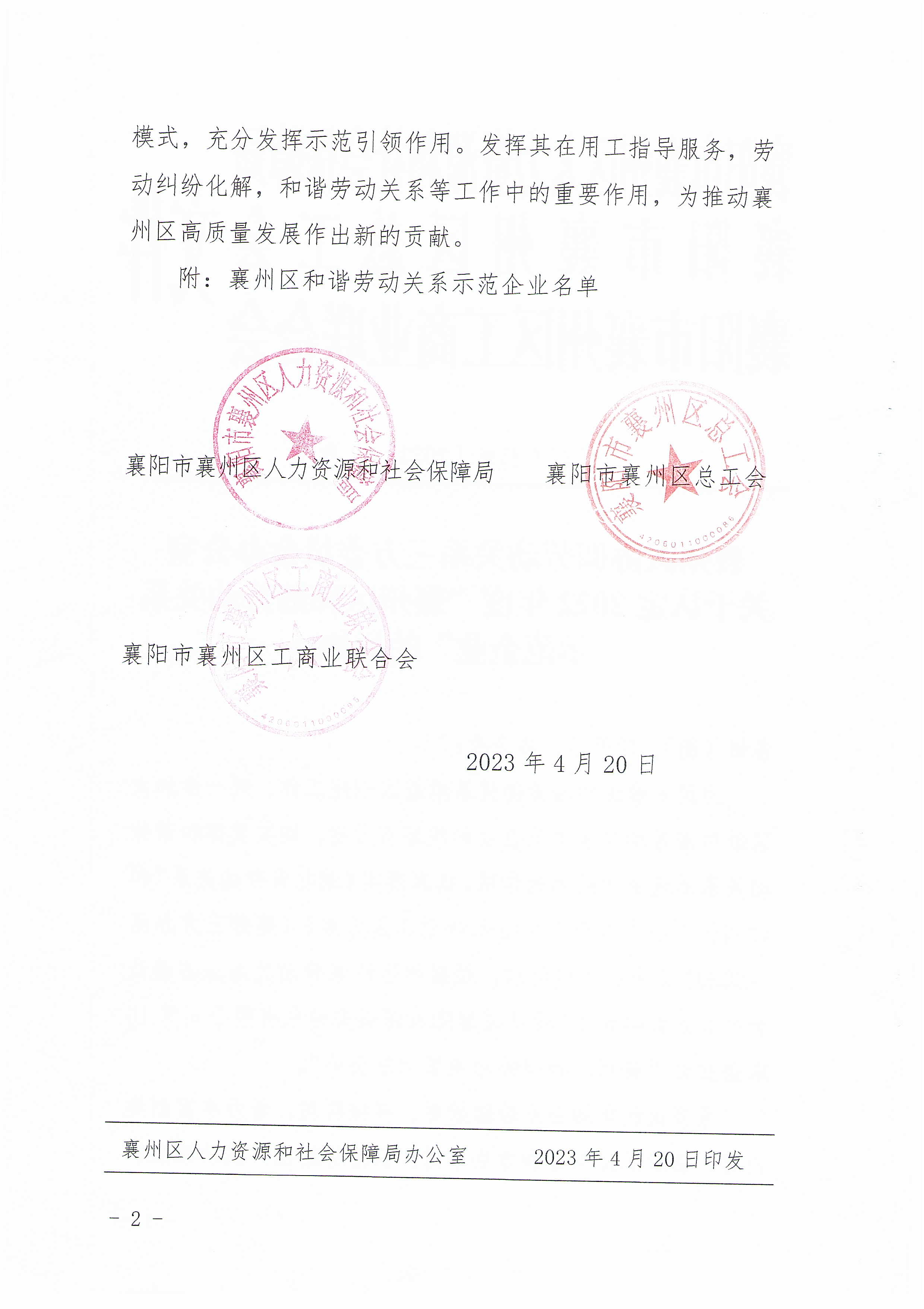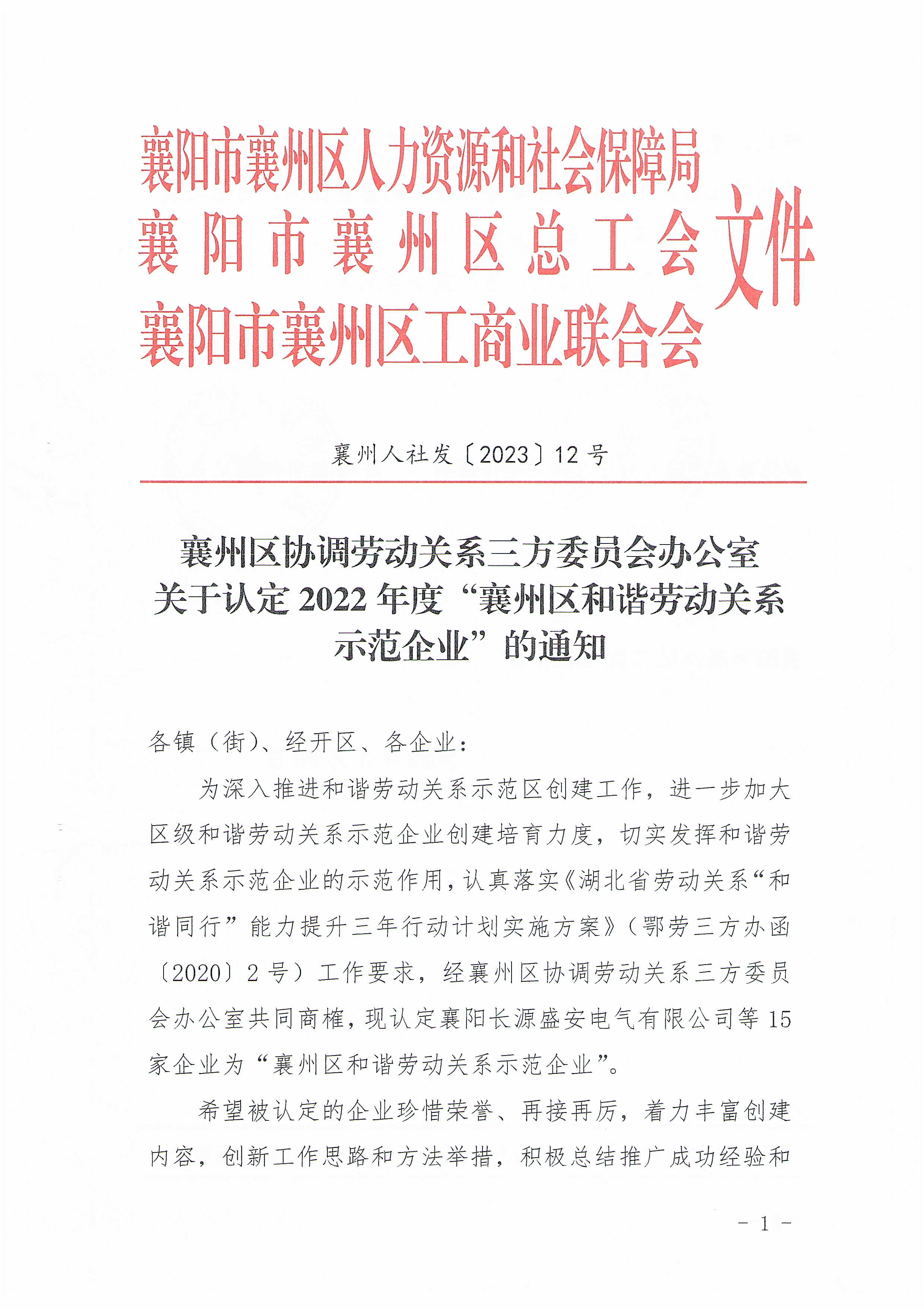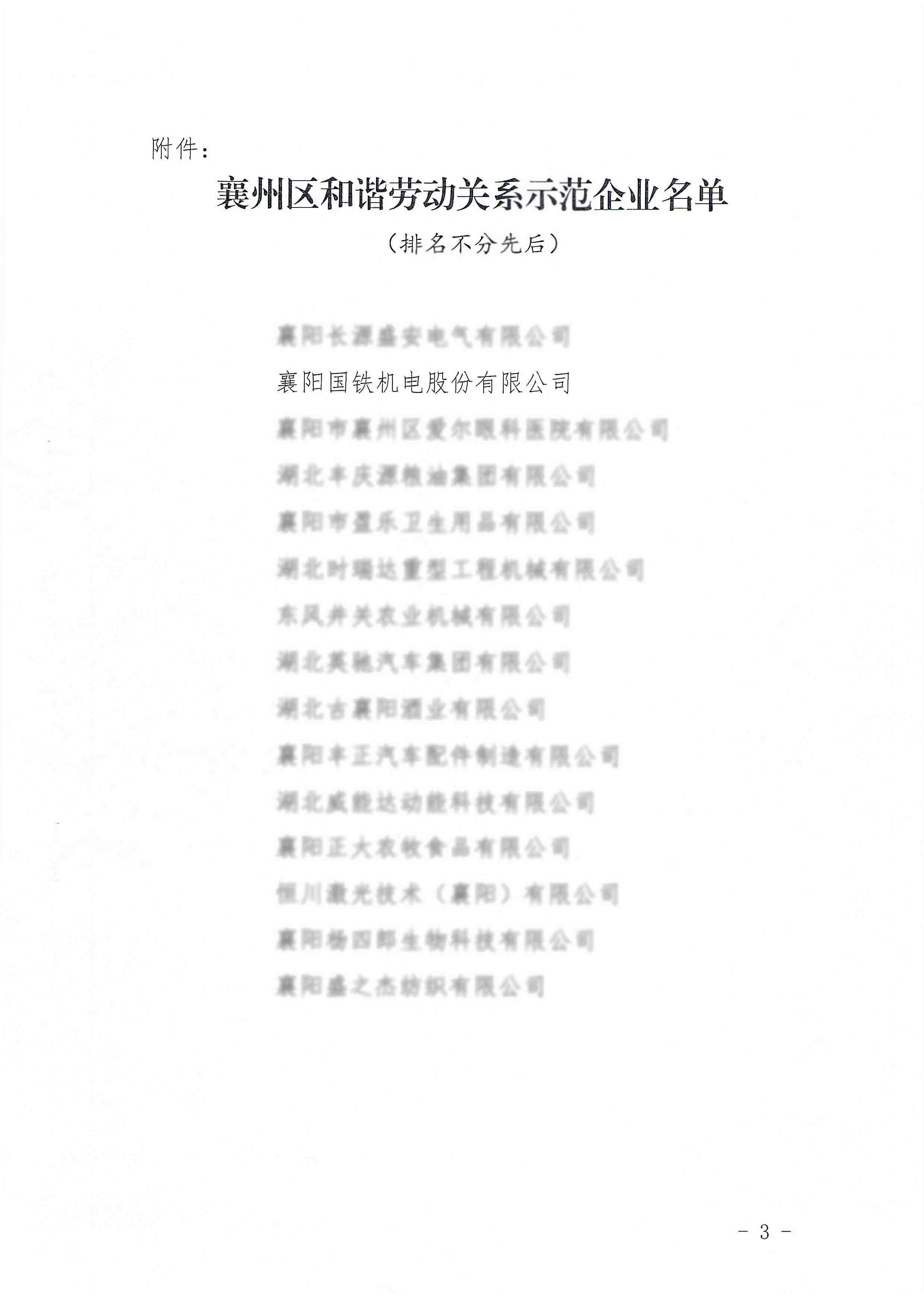 國鐵機電獲“襄州區和諧勞動關系示范企業”榮譽