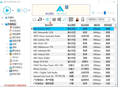 AbroadRadio軟件,是一款PC端電臺軟件,其小巧,快捷,集報刊雜志,網(wǎng)絡電視,電臺 | 電視臺分享,收藏夾云端備份等多項功能。無論您是外語、音樂、體育或是電影愛好者,AbroadRadio都會給您帶來不一樣的體驗!