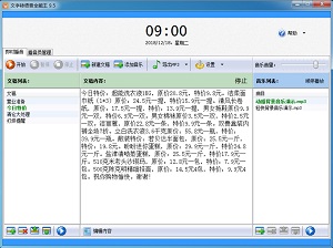 您只需把播音稿導(dǎo)入到軟件,軟件就可對(duì)您的文字播音稿進(jìn)行自動(dòng)循環(huán)播音,每天播音內(nèi)容不一樣時(shí),您只需修改對(duì)應(yīng)文字即可變更播音內(nèi)容,使用十分方便。軟件在進(jìn)行文字播音的同時(shí),還能自動(dòng)播放背景音樂(lè),使播音效果更佳。如您希望在音響上播放商品促銷(xiāo)信息,您可以使用導(dǎo)出MP3的功能,將您的文字播音稿導(dǎo)出成帶有背景音樂(lè)的語(yǔ)音廣告MP3,隨后您可以把它任意放到U盤(pán)或者手機(jī)上播放,自由度非常高。
