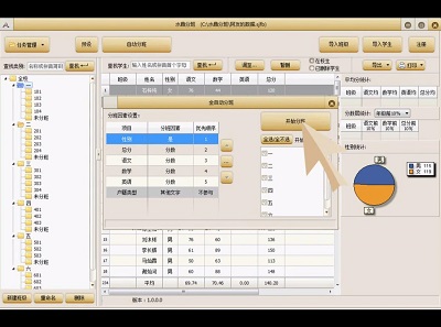 (打個比方,如果“語文”選擇了“參與分班”,那么在自動分班時,會盡量平衡各班的“語文”。如果語文是分數(shù)類型,會讓各班平均分盡量接近。如果是等次或文字類型,會盡量讓各班的各個等次類型的人數(shù)相等)。