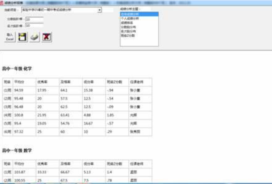 成績分析,生成報(bào)表計(jì)算班級(jí)和年級(jí)的單科和總分平均分;